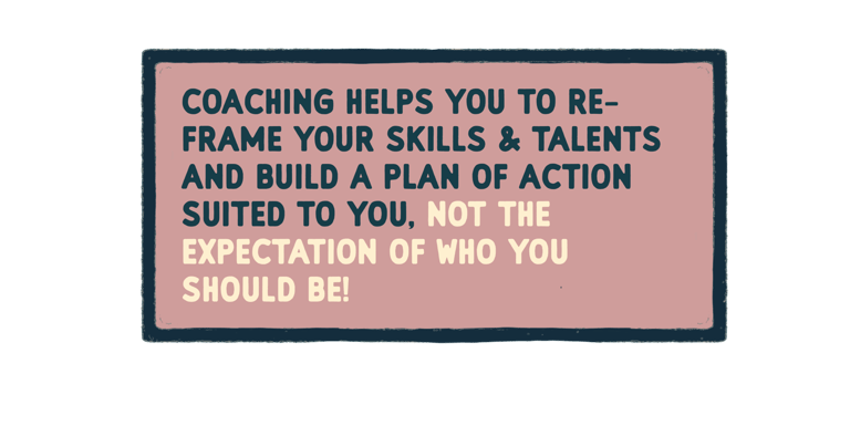 in 1:1 COaching we'll work through your personal strengths and goals. Identify self perceptions you may have built up that could be holding you back. create strategies that match your productivity flow and work towards realistic progress without the limiting beliefs or ambition overwhelm